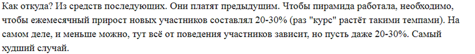 2. Новый «рядовой» передавал десятнику деньги, или резервировал их на счете, или в электронных деньгах. Эти средства становились «взносом». Они не уходили из поля зрения участника, но десятник получал право в любой момент их потребовать.