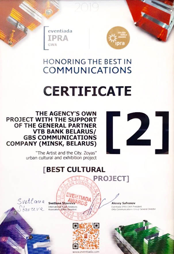 В 2019 году проект был посвящён двум белорусским современным художницам. На одной из центральных площадей Минска с мая по июль выставлялись репродукции 32 картин Зои Литвиновой, с июля по сентябрь – Зои Луцевич. Выставка сопровождалась описанием на 3 языках – русский, белорусский, английский. В ходе проекта были реализованы 3 специальные акции: «Свободный мольберт» – мастер-класс от Зои Литвиновой, «Sound Minsk» – живой концерт в беспроводных наушниках и «Сinemascope» – киновечер в silent-формате. В сентябре выставка переехала в Брест к 1 000-летию города.