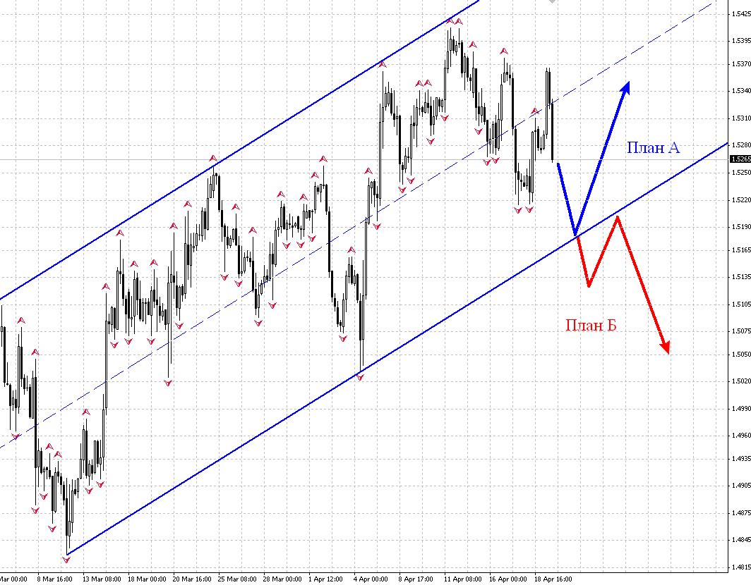 Как правило, вероятность того, что существующая тенденция скорее продлится, обычно выше, чем возможность её изменения. По статистике известно, что возможны два варианта — отскок и продолжение тренда (план А), или пробитие линии, и смена тренда (План Б). Ориентируясь на прошлые данные предполагаем, что ситуация в будущем будет развиваться по одному из сценариев.