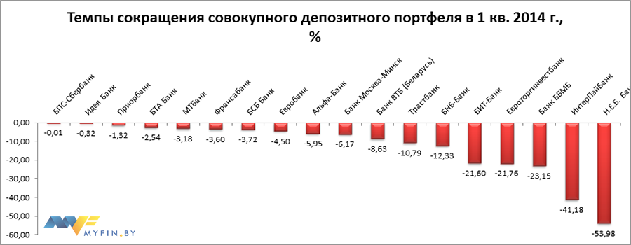 8 банков снизили объемы депозитов физических лиц в 1 квартале. Среди них – ИнтерПэйБанк, Банк ВТБ (Беларусь), Трастбанк, РРБ-Банк и др.