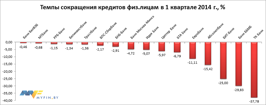 - 16 банков сократило кредитование физ.лиц в 1 квартале 2014 года, нарастило – только 12 банков.