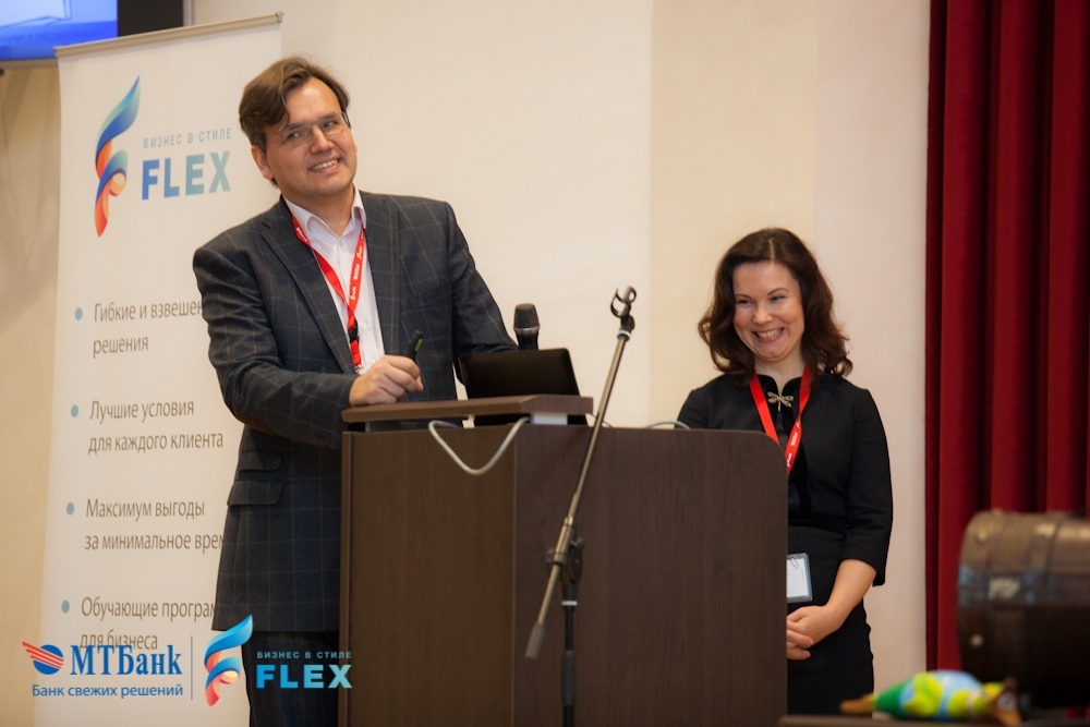 4 ноября стартовал образовательный проект «Бизнес в силе FLEX», который уже второй год проходит под эгидой МТБанка. Несколько десятков корпоративных клиентов банка смогли получить бесценную информацию о том, как правильно подбирать кадры для бизнеса, как выстраивать систему мотивации сотрудников и держать руку на пульсе каждого в вашей команде.