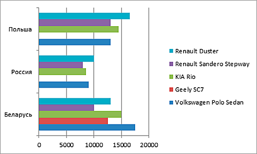 Рассмотрим это на примере наиболее продаваемых автомобилей в Беларуси. Пятерка лидеров по объемам продаж выглядит так: