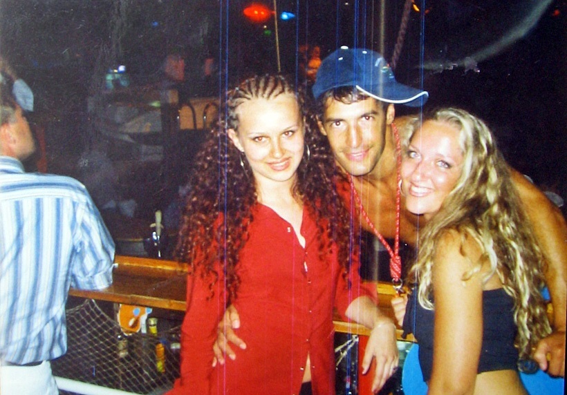 Юность в красной рубашке. На отдыхе с друзьями в Испании.