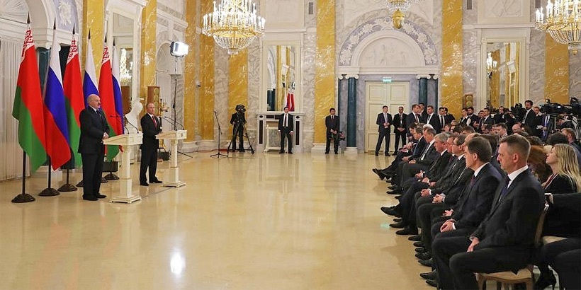 В понедельник президент Беларуси Александр Лукашенко встретился с президентом России Владимиром Путиным в Санкт-Петербурге. После переговоров главы государств сделали заявление для прессы, сообщает kremlin.ru.