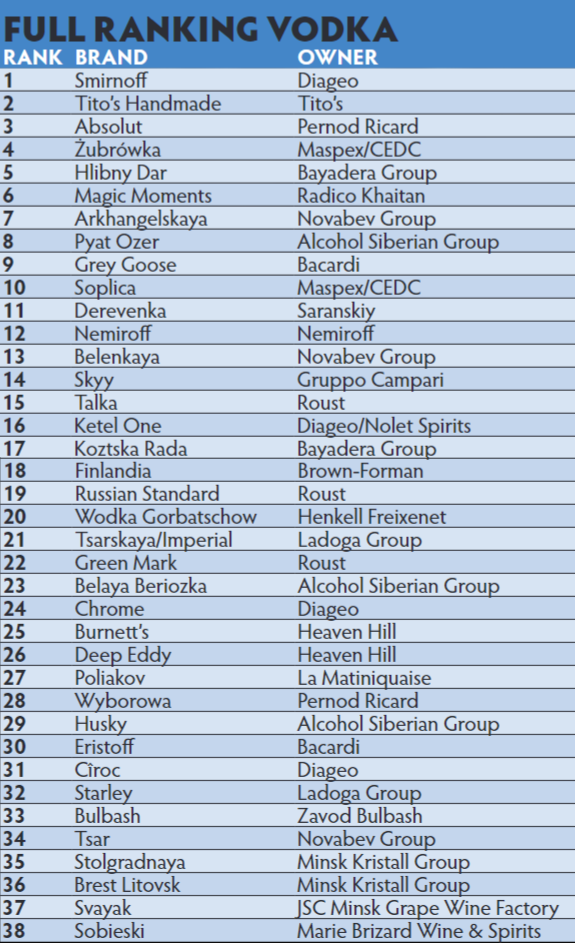 В общем списке белорусские водочные бренды заняли следующие позиции:
