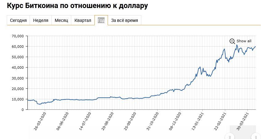 год назад стоимость биткоина