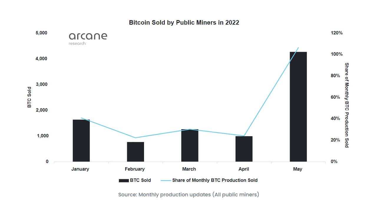 Майнинговые фирмы в мае сбывали все без исключение добытые ими криптоактивы, тогда как в предыдущие месяцы 2022 года они продавали всего 20-40% произведенной криптовалюты.