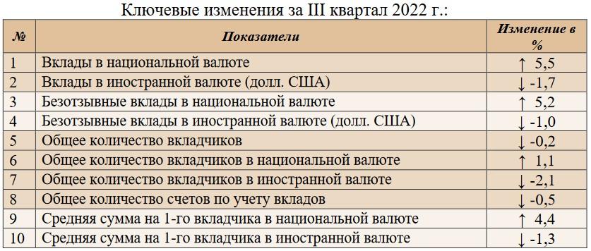 По информации банков–участников обследования за III квартал 2022 года доля срочных вкладов (депозитов) населения в национальной валюте увеличилась с 37,6% до 39,7%.