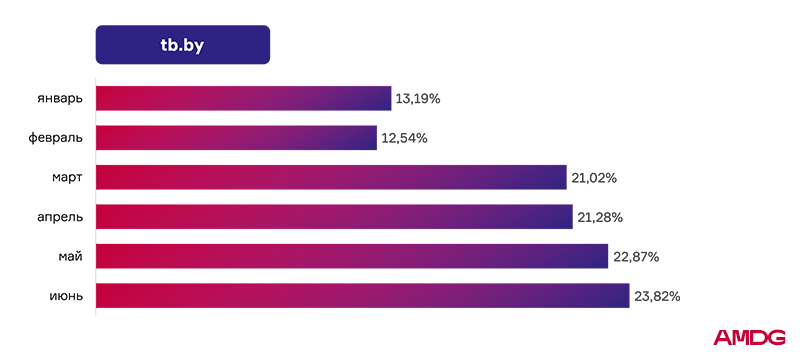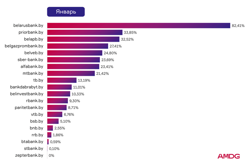 - Белагропромбанк ― ср. показатель видимости 19,23%