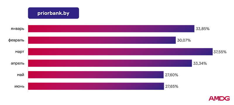- Приорбанк ― ср. показатель видимости 31,68%