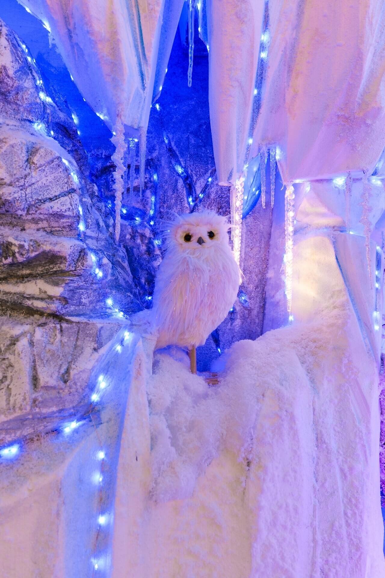 Инсталляция состоит из нескольких уровней. Выполнена в «зимних» тонах: белом и голубом. В композиции отражены как реально существующие объекты, так и сказочные. Мельница, маяк, фантастический замок, а ещё деревеньки и лесные обитатели.