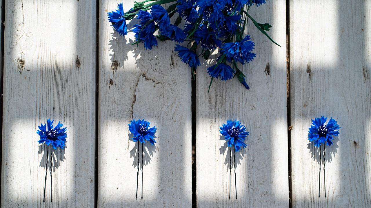 Материалы закупаю в специализированных магазинах для творчества. Обычно с ними не было проблем, но несколько месяцев назад из продажи пропал фоамиран, который был идеален по цвету и толщине для моих васильков. Я перепробовала множество других вариантов, но ни одним не осталась полностью довольна. Сейчас я использую близкий аналог, но очень надеюсь, что прежний материал все-таки появится в продаже.