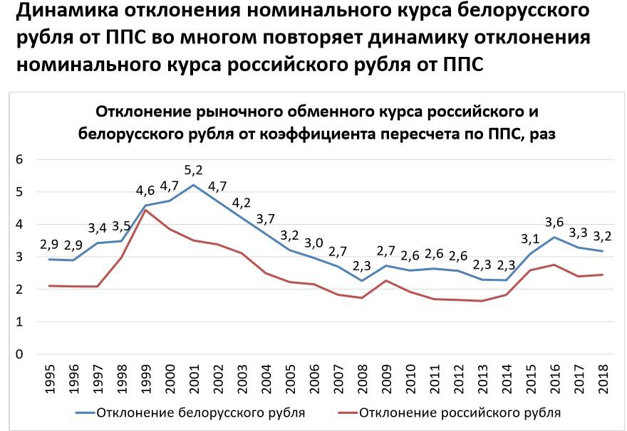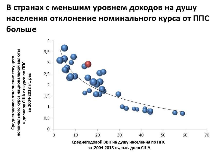 «Если брать сравнение с другими странами, мы видим зависимость: чем ниже уровень развития у страны, тем больше номинальный валютный курс отклоняется от паритета покупательной способности».