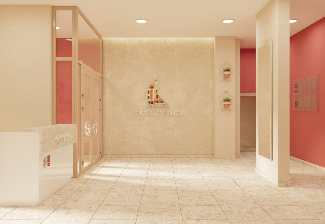 В домах многофункционального комплекса вместо привычных подъездов создаются красочные, просторные и функциональные дизайнерские лобби. Площадь лобби дома «Портофино» более 50 м2, а высота потолков более 3 м. За стойкой консьержа красивая картина достопримечательностей небольшого города в провинции Генуя — одного из самых живописных средиземноморских портов, в честь которого назван дом.