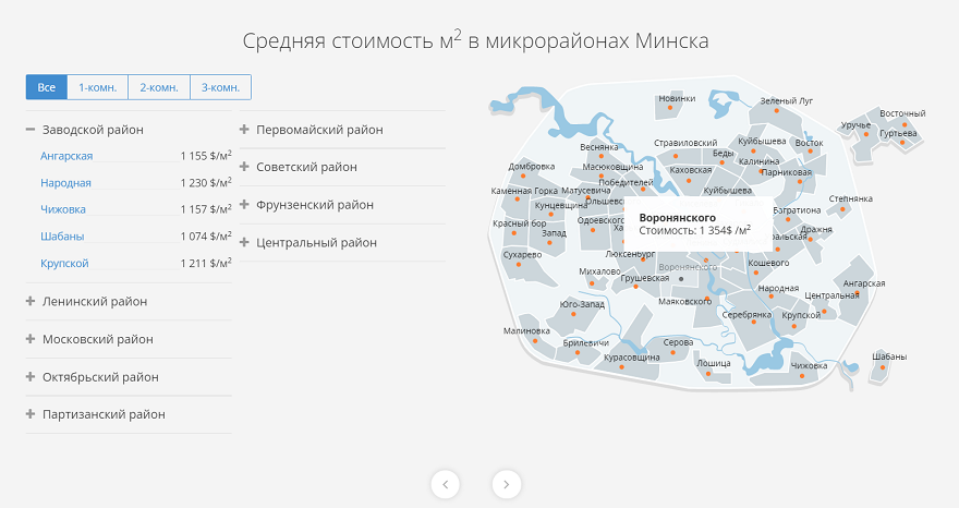 Чтобы ориентироваться в этом не только отталкиваясь от средней стоимости квадратного метра по городу, на Domovita.by есть инструмент «Динамика цен». Там можно увидеть то, как меняются цены в районе и городе, а также сколько раз автор объявления изменял стоимость объекта, то есть насколько он готов торговаться.
