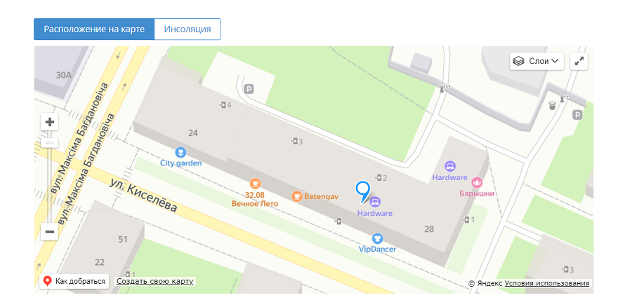 Находится ли квартира над рестораном, откуда постоянно доносится запах готовки, а может на первом этаже открыт частный детский сад. Или наоборот вам важно, чтобы в доме были магазины, аптеки, сервисный центр, потому что это удобно. Все это видно на картах и без выезда на просмотр.
