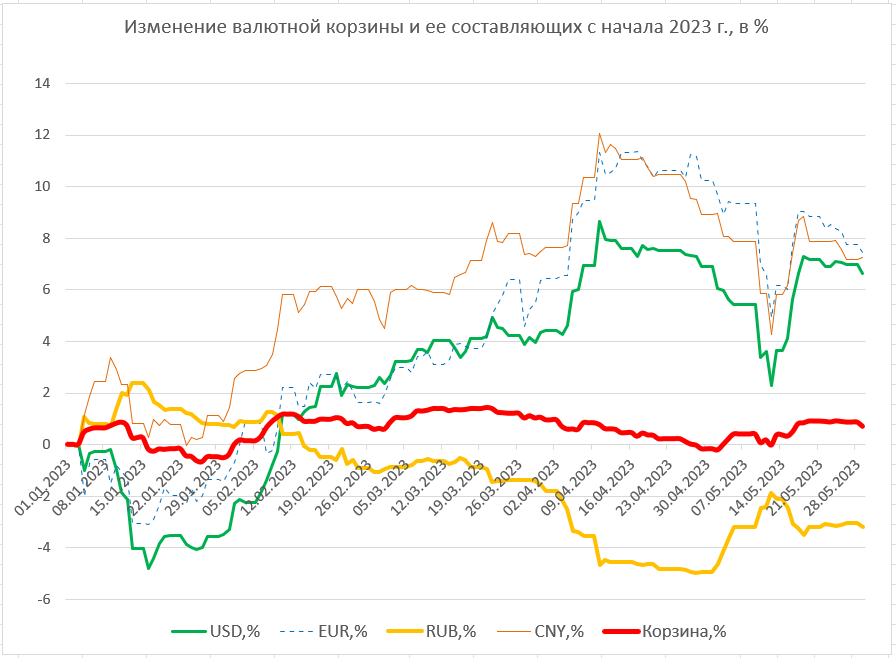 Снижение всех валют, входящих в корзину, естественным образом отправило вниз и саму корзину. Она подешевела к белорусскому рублю за неделю на 0,19%.