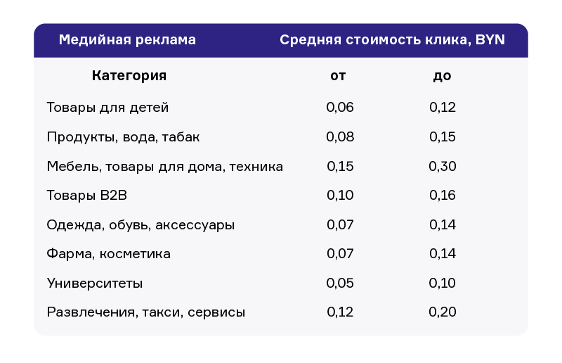 Средняя стоимость клика в системе