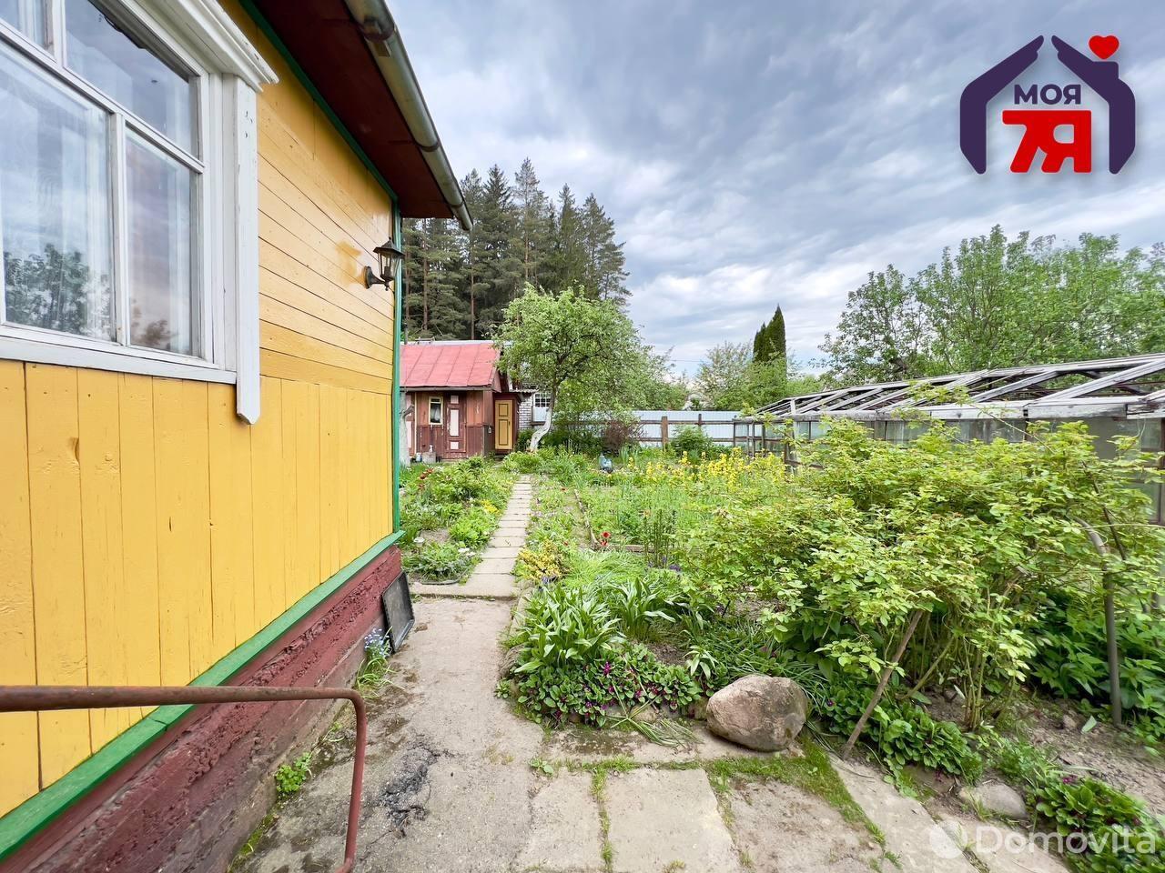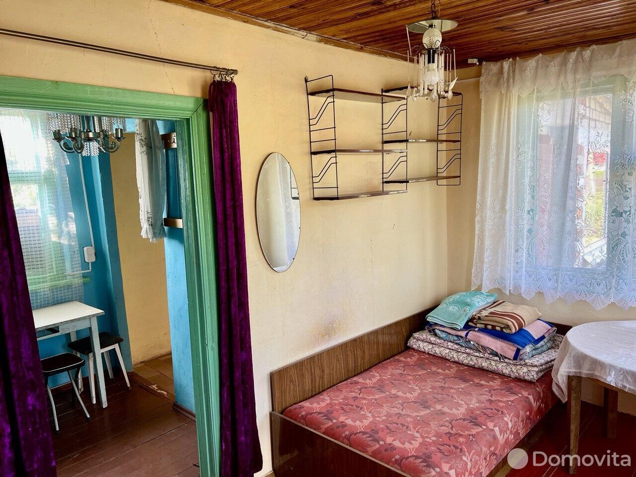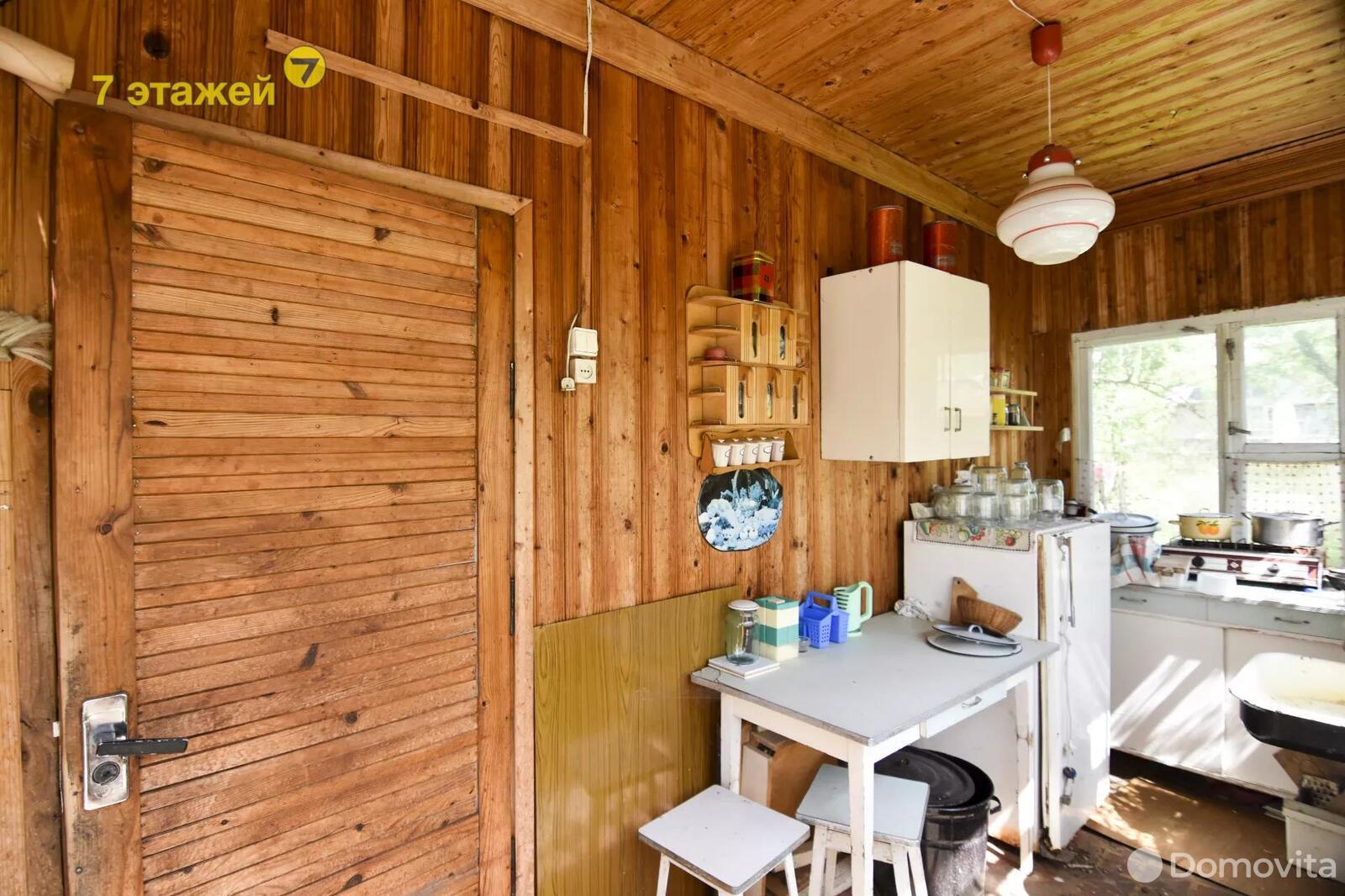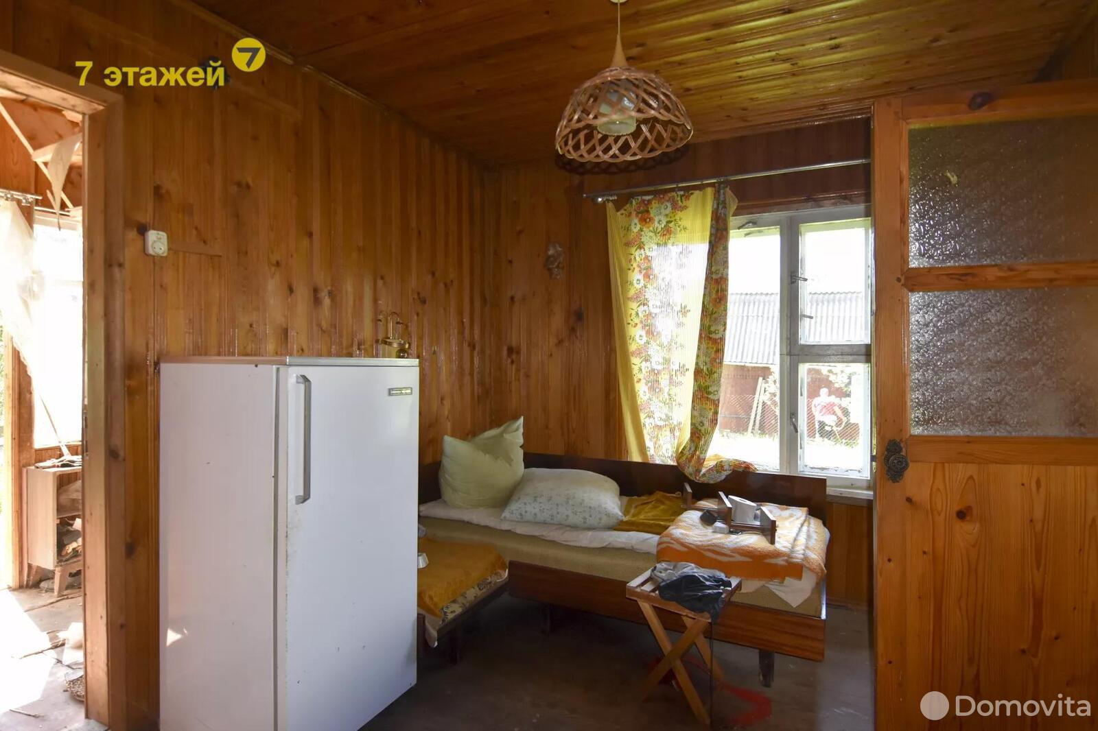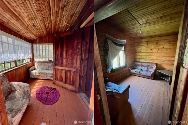Небольшой садовый домик из кирпича, всего на 26,5 квадратных метра. Но если понадобится площадь, то можно сделать ремонт и на втором уровне под крышей, а под домом есть большой подвал. Отапливается печью, водоснабжение сезонное. Дом строили в 1999: внутри деревянные полы, покрашены стены, потолок облицован вагонкой, вместо дверей – шторы, но это все равно выглядит не плохо. Участок 8 соток, на территории растут плодовые кусты и деревья. Находится дача в 26 километрах от Минска на машине, а если решите ехать на поезде, то пройти от станции нужно будет 25 минут.