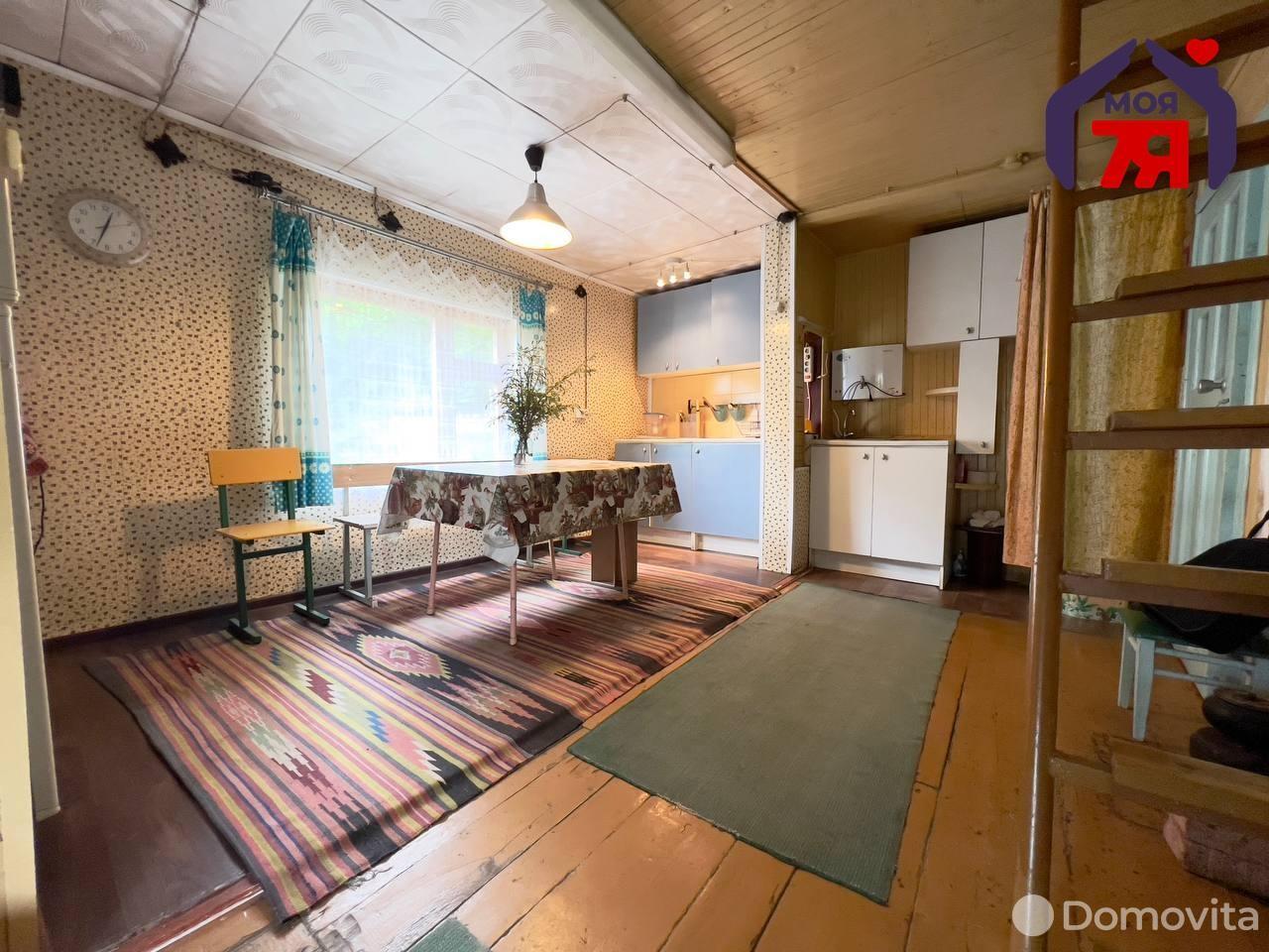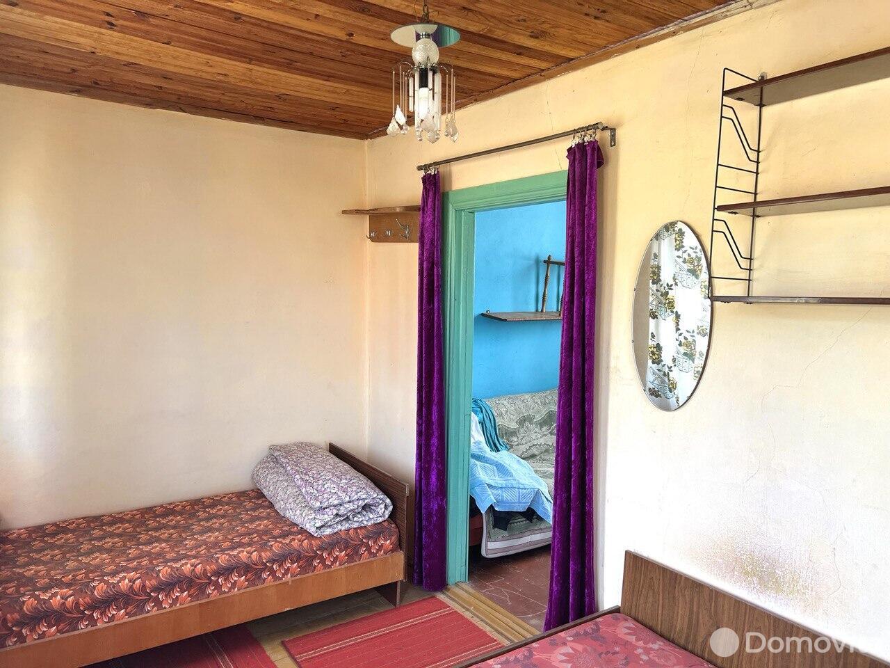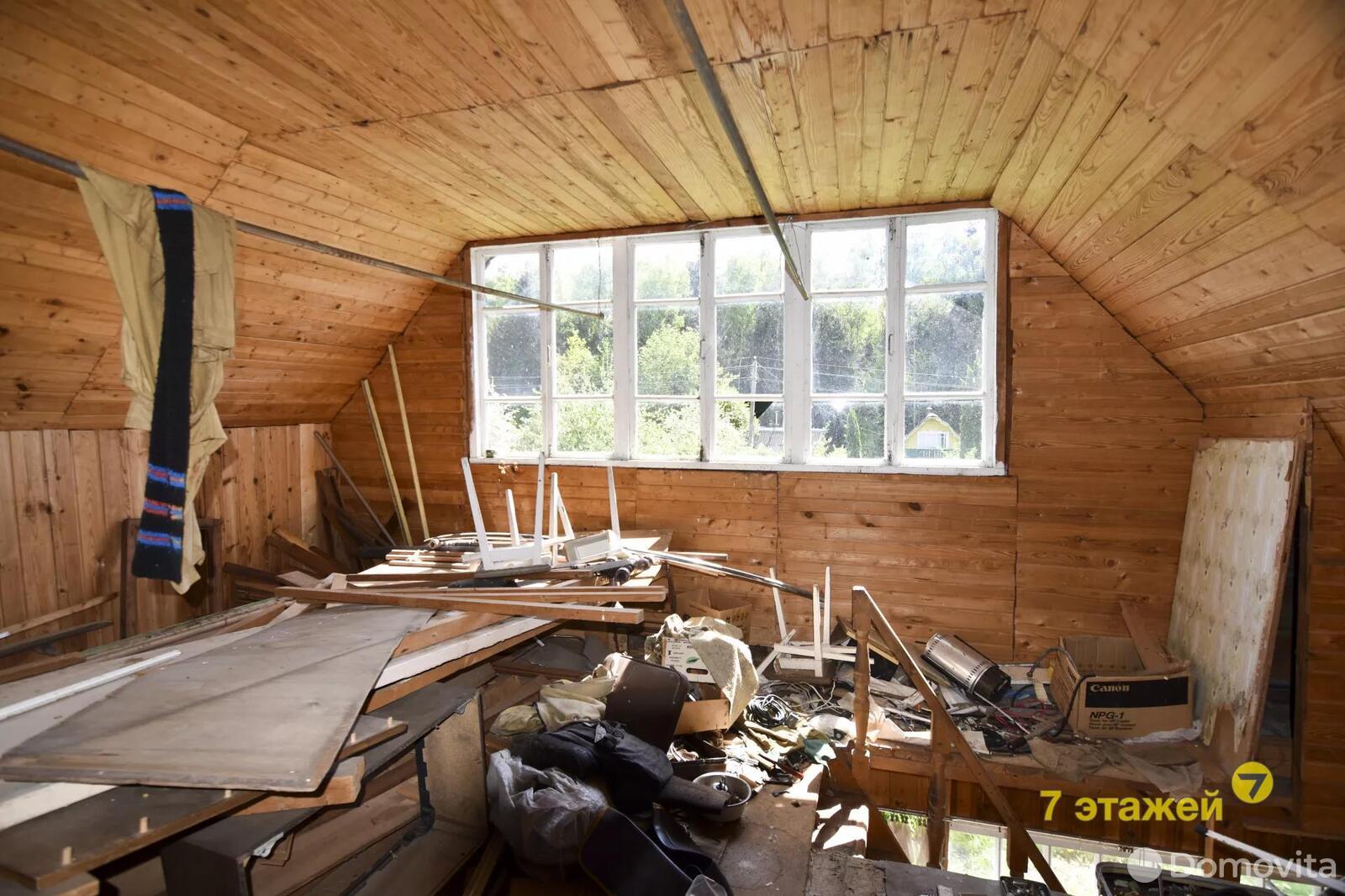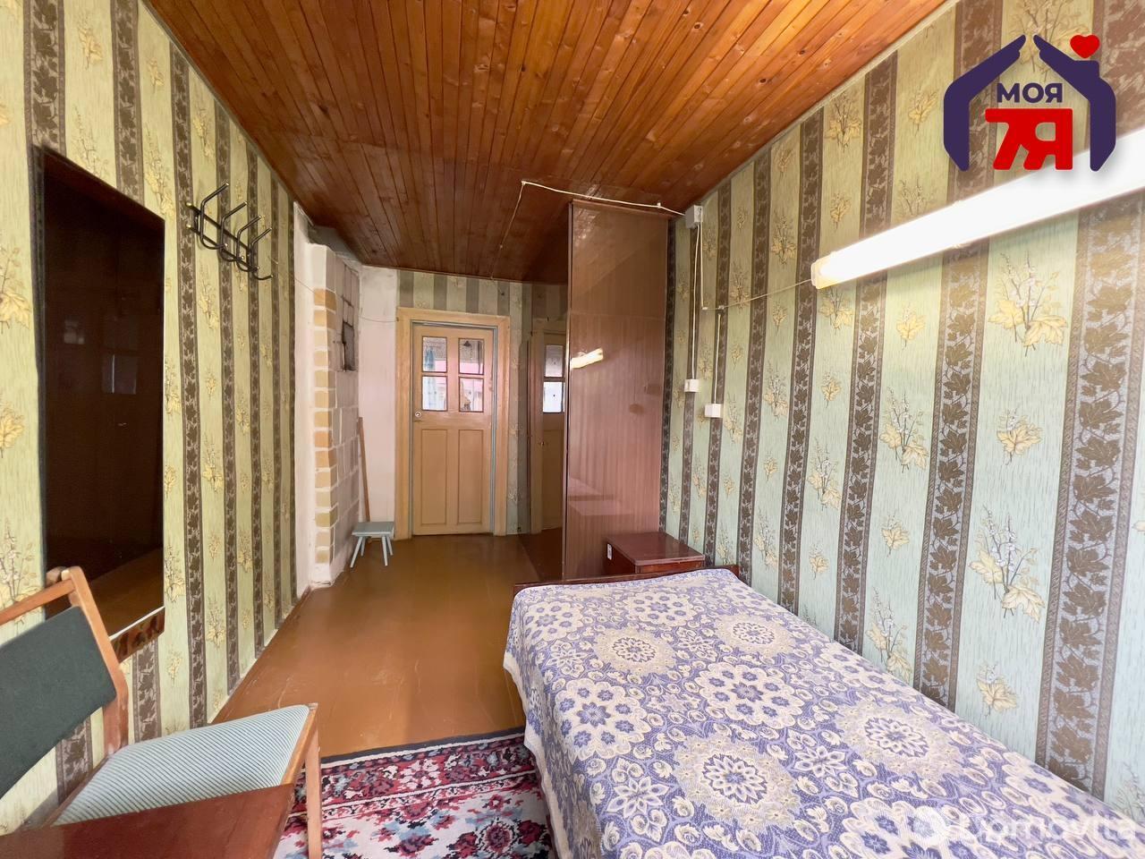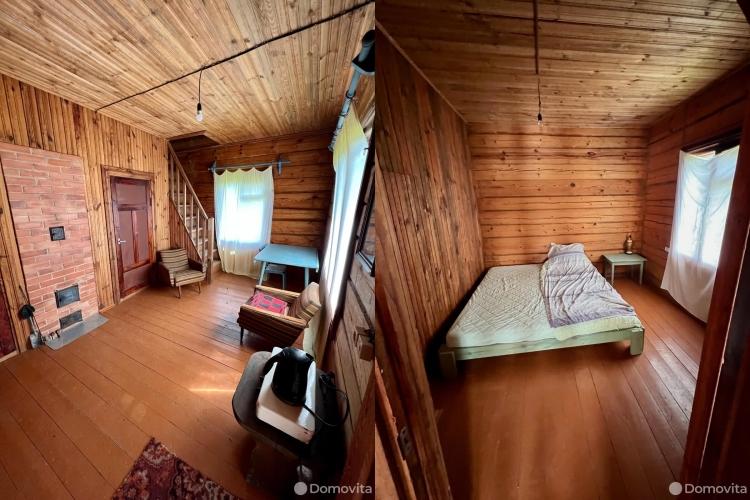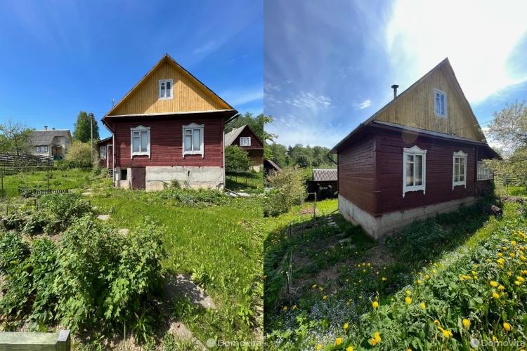 Двухуровневый дом из бруса 2000 года постройки. Здесь 71 квадратный метр площади и четыре отдельные комнаты. Внутри все облицовано вагонкой и выглядит неплохо, на фотографиях много мусора, но его будет несложно убрать. Дом отапливается печью, проведено сезонное водоснабжение. Участок площадью 4 сотки с деревьями и сараем. До Минска 24 километра на машине, также можно добраться на автобусе или маршрутке.