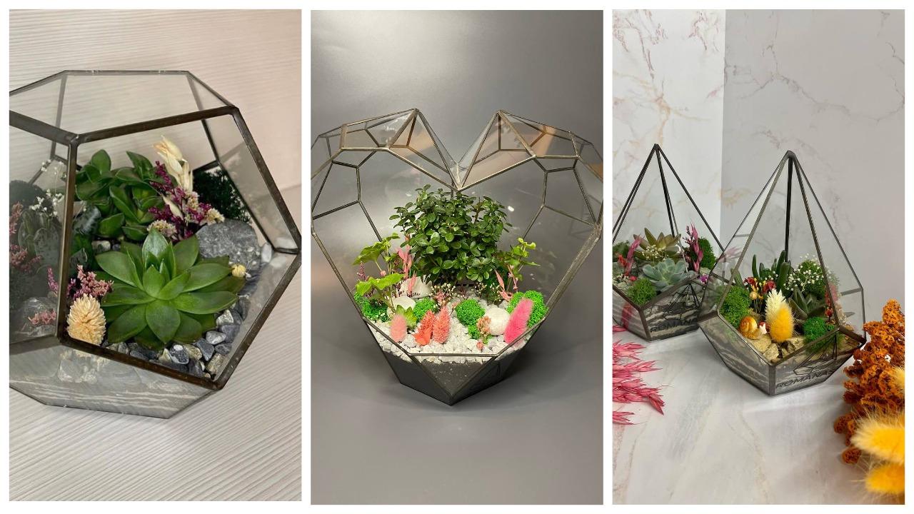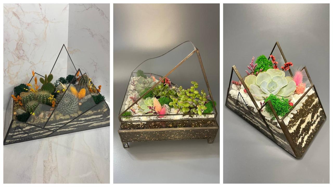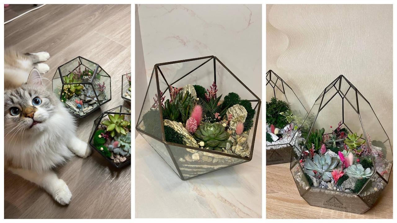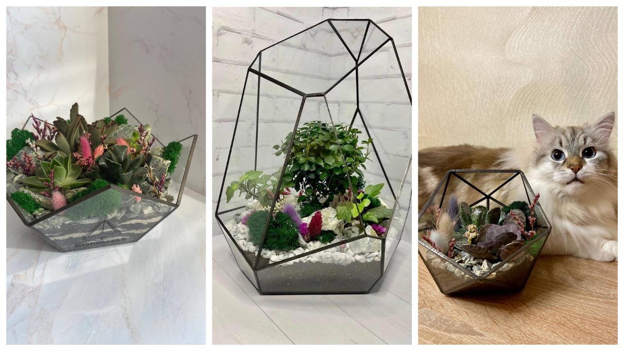 Первые работы, конечно же, остались у нас дома для кактусов. Затем один флорариум подарил другу на день рождения. Все присутствующие гости были в приятном шоке! Тогда, в ноябре 2021 года, мы с супругой задумались: а почему бы не поставить это дело на поток? Конкуренцию долго изучать не пришлось – в Беларуси эта ниша оказалась практически свободна.