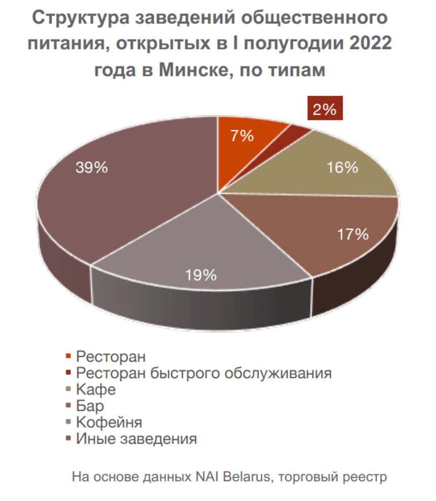 В I полугодии 2022 года в городе Минске функционировало практически 3,65 тыс. заведений общественного питания. Инфраструктура рынка общепита выглядит следующим образом: