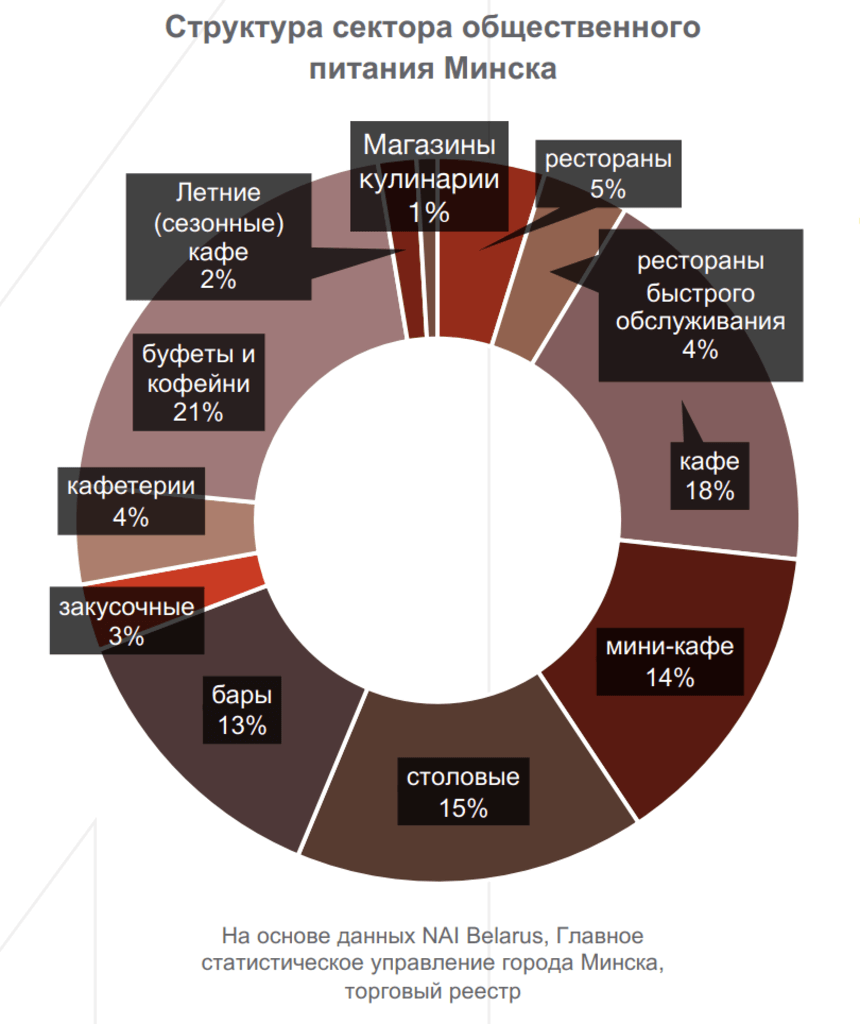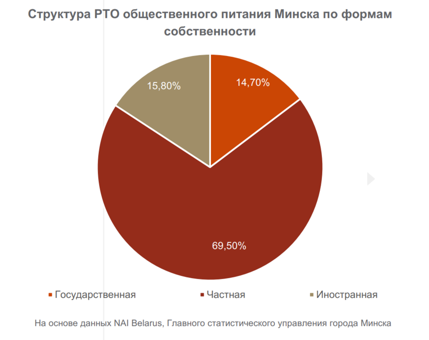 Если сравнить с другими секторами экономики и направлениями бизнеса в Республике Беларусь, ее можно охарактеризовать, как значительную. Так, иностранный бизнес в общепите Минска занимает около 16% в РТО сектора.