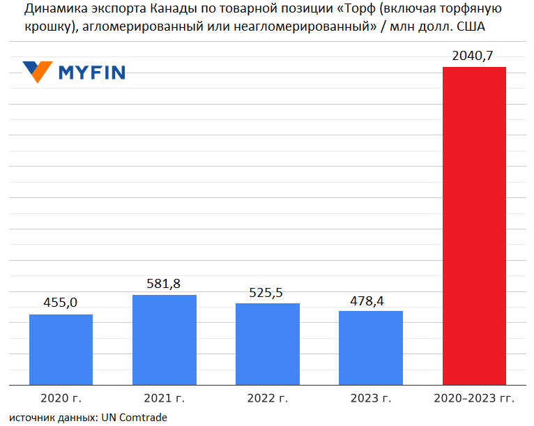 В 2022 году Канада заработала на экспорте торфа около $525,5 млн. В прошлом году продажи на внешних рынках заметно просели и составили $478,4 млн.