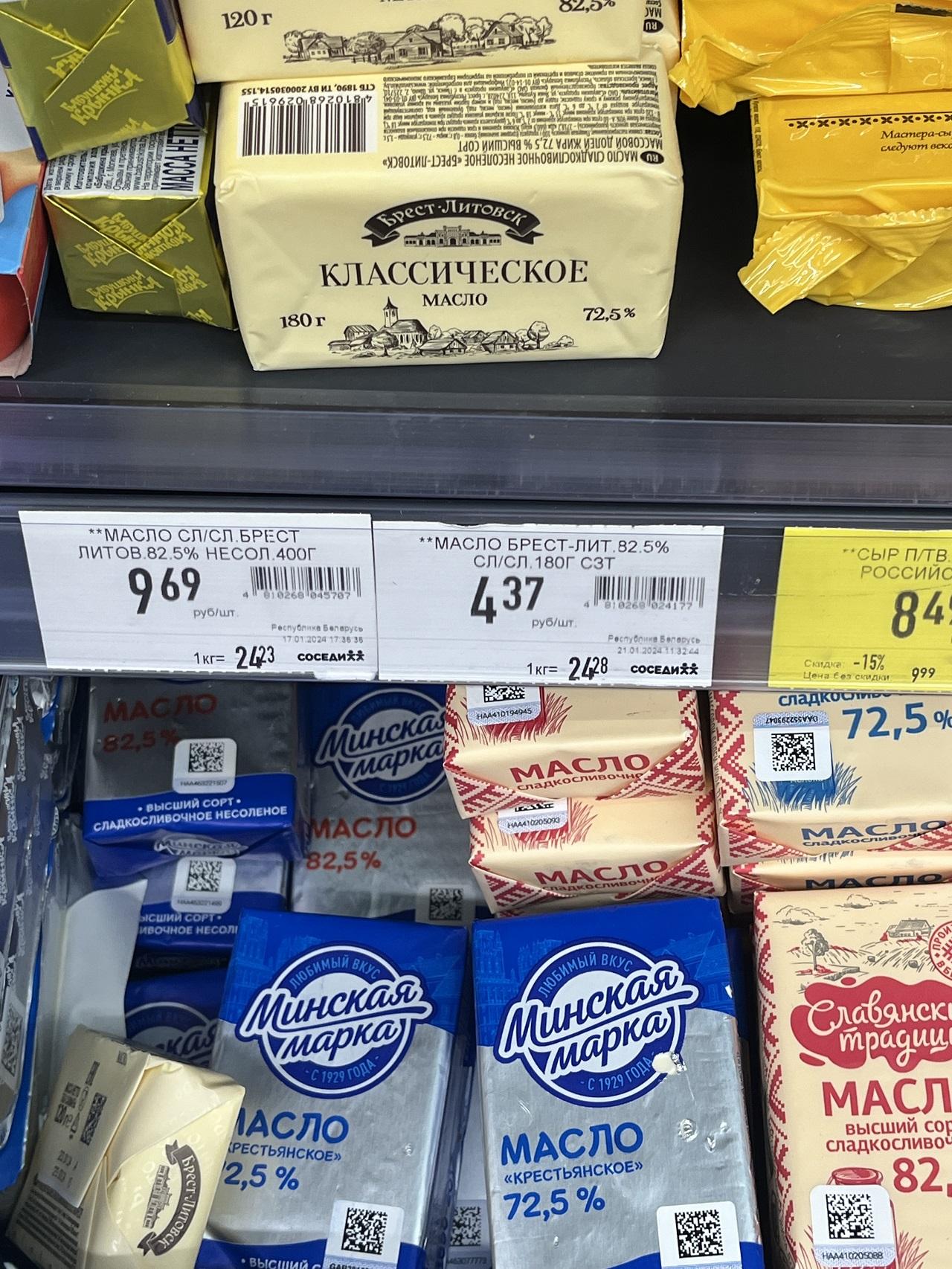 При сборе данных для категории томатов принимались во внимание сорта с самыми низкими ценами среди представленных в том или ином супермаркете, для категории яблок – сорта «Айдаред» и «Гала». Также столбце «Евроопта» была указана цена сливочного масла бренда «Бабушкина крынка» с аналогичными параметрами.