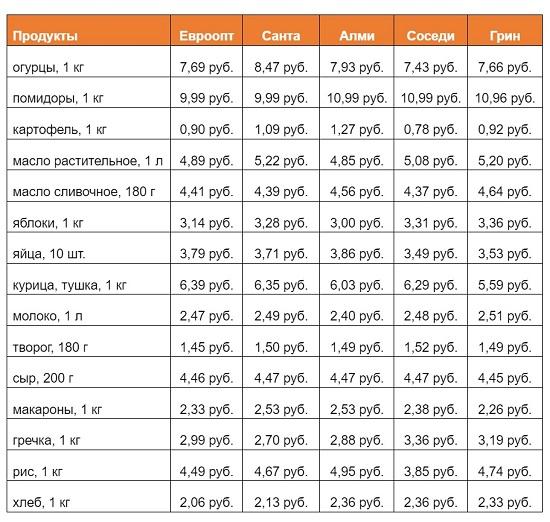 Со списком продуктов мы отправились в супермаркеты пяти белорусских сетей: «Евроопт», «Санта», «Алми», «Соседи» и «Грин».