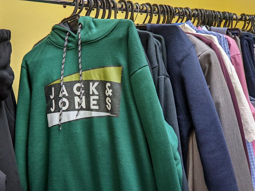 В «100 ОК» за 55 рублей можно купить мужскую толстовку датского бренда Jack & Jones – в фирменном магазине цены на этот вид одежды стартуют от 119 рублей. Яркий женский джемпер Benetton здесь предлагают за 49 рублей, тогда как его первоначальная цена составляет 69,95 евро (199 рублей). Мужские шорты Nike Dri-FIT обойдутся в 17,5 рубля – в фирменном магазине за аналогичную модель придется отдать не менее $30 (75 рублей).