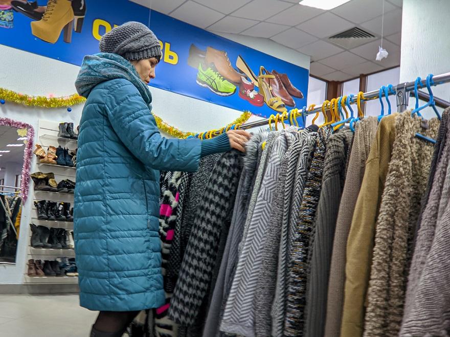 На прогулку по секонд-хендам мы отправимся в Бобруйске. На среднюю зарплату в этом году, которая в октябре прошлого года, по данным Белстата, составила 822,4 рубля, горожанин может купить 4 хлопковых мужских рубашки Mango на распродаже в фирменном магазине – по 169,9 рублей. Или 2 женских укороченных пуховика Adidas – по 366 рублей.