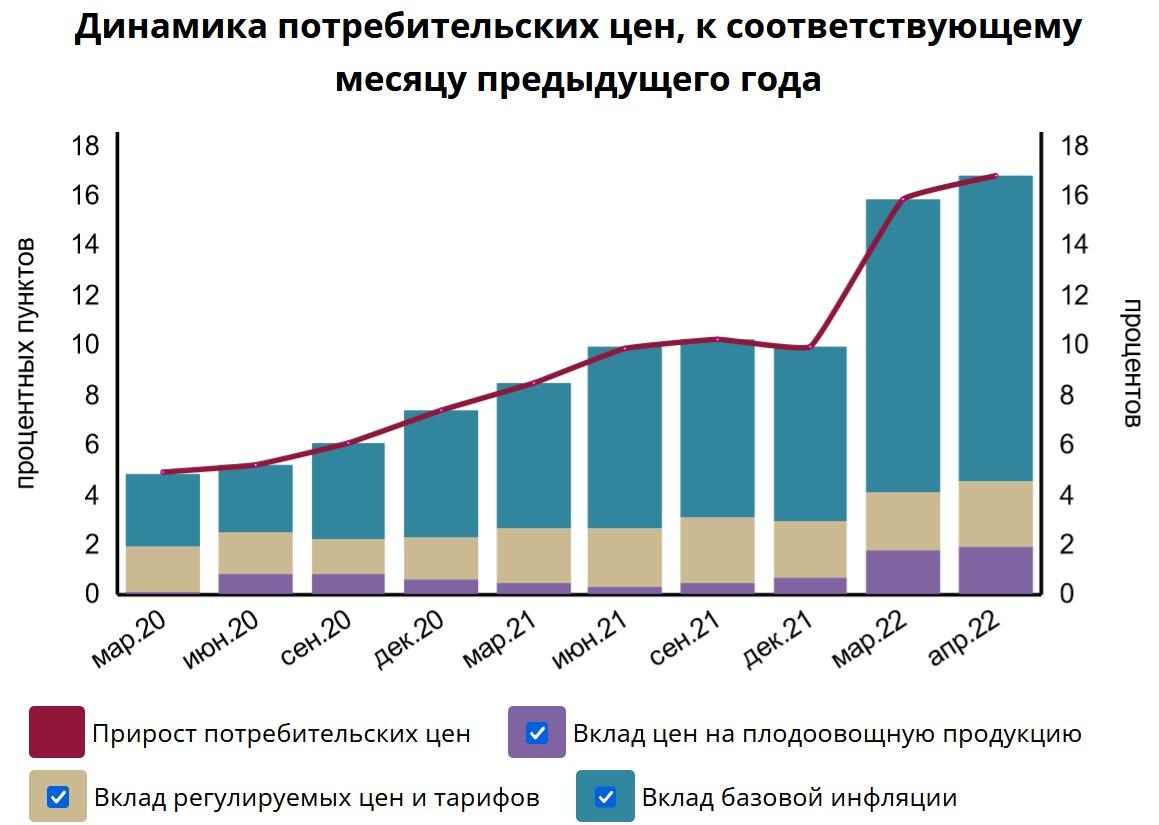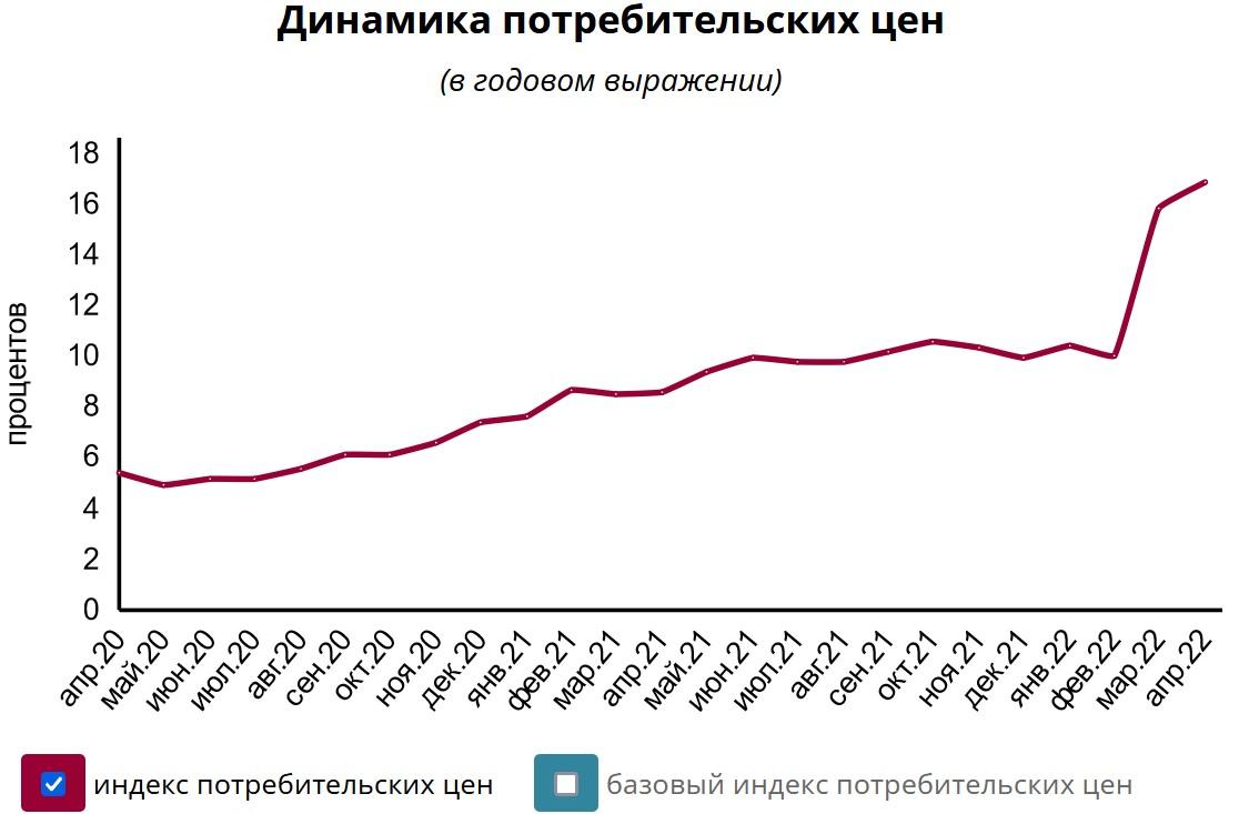 В Нацбанке отмечают, что базовая инфляция в годовом исчислении в апреле составила 17,2%.
