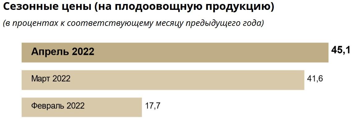 Еще больше разогнался рост сезонных цен (на плодоовощную продукцию) и составил 45,1%.