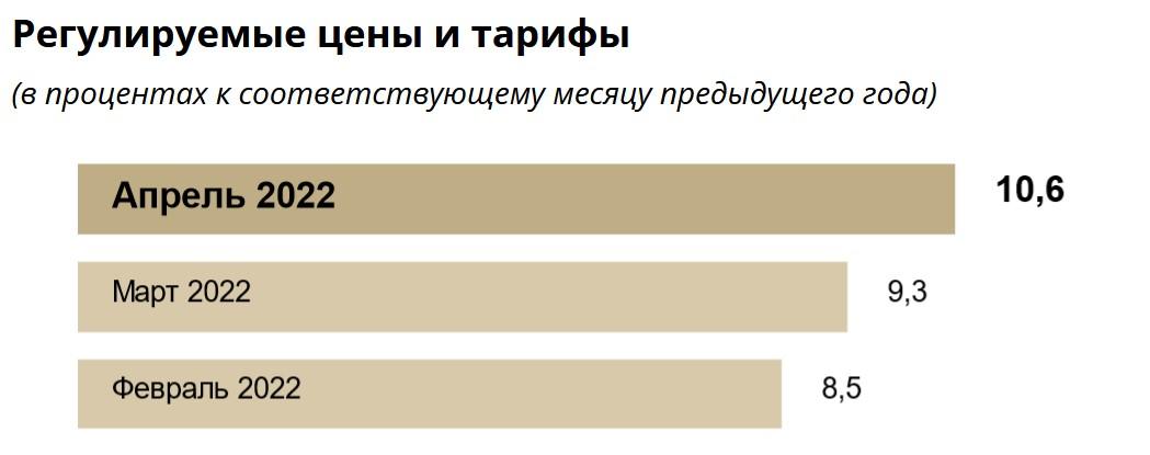 Прирост регулируемых цен и тарифов в апреле составил 10,6% по отношению к апрелю прошлого года.