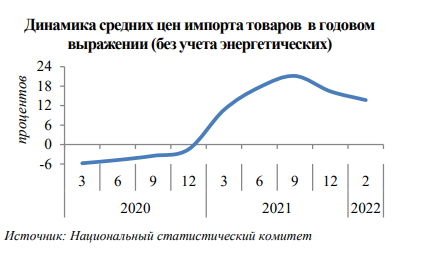 Также эксперты Нацбанка отмечают в докладе, что на фоне введенных в отношении РФ санкций произошло ослабление российской валюты, которое и вызвало снижение курса белорусского рубля из-за высокой взаимосвязи экономик Беларуси и России. В результате увеличилась стоимость импортных товаров и возросли инфляционно-девальвационные ожидания, что отразилось на динамике роста цен. Дополнительное инфляционное воздействие оказывал повышенный внешний инфляционный фон. Другими словами, цены в Беларуси быстро росли из-за событий на внешних рынках.