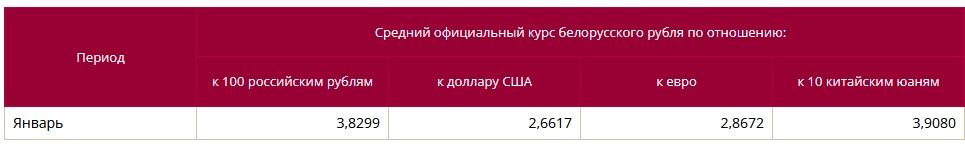 - по отношению к 100 российским рублям – 3,8299 рубля (для сравнения – за декабрь 2022 года было 3,9120 белорусского рубля),