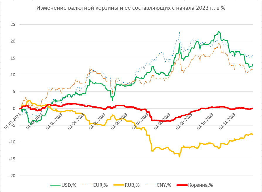 Рост российского рубля и юаня в составе корзины «перевесило» снижение доллара. В результате, за прошедшую неделю стоимость валютной корзины выросла на 0,19%. Национальная валюта ослабла к корзине после недели укрепления.