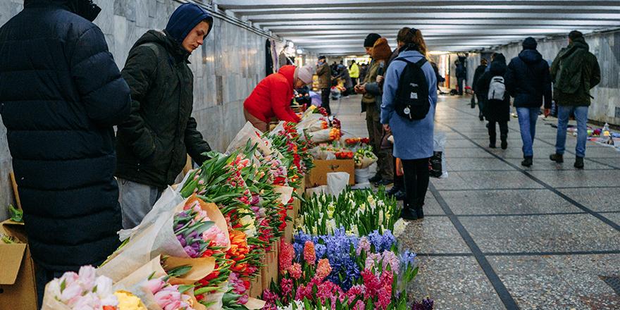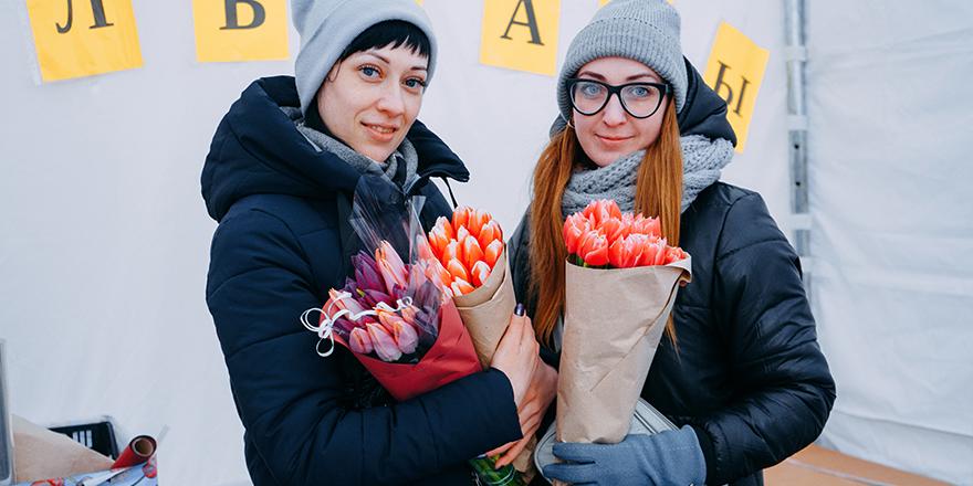 К 7 марта палаток с цветами уже много в каждом районе Минска. Мы выбрали самые активные точки в центре города – Комаровский рынок, подземные переходы метро и железнодорожного вокзала, и побеседовали с продавцами тюльпанов.