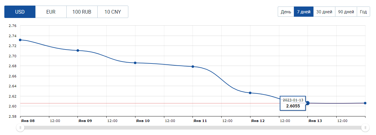 На белорусском валютном рынке все эти факторы прошлой недели привели к тому, что доллар США потерял за пять торговых дней -4,61% и закрыл неделю на отметке USD/BYN 2,6055.