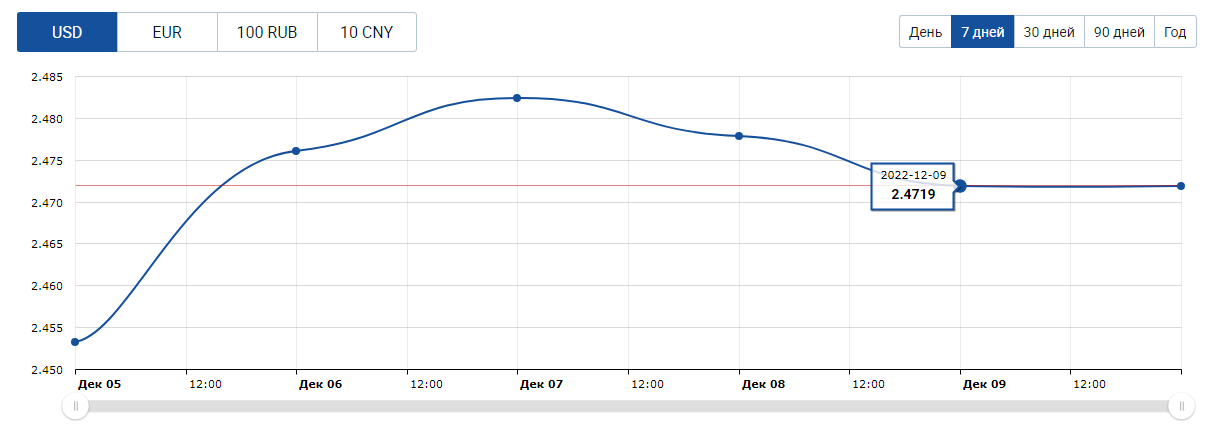 Курс доллара США вырос +1,03 % и закончил прошлую неделю на отметке USD/BYN 2,4719. К началу года «бакс» сохраняет -2,99 % просадки.
