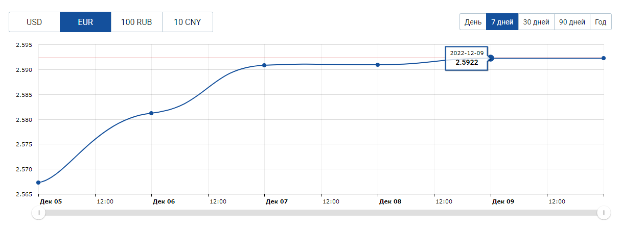 Евро за прошлую неделю показал лучший результат в +1,60 %, сократив отставание к началу года до -10,07 %, и закрыл пятничные торги с курсом EUR/BYN2,5922.