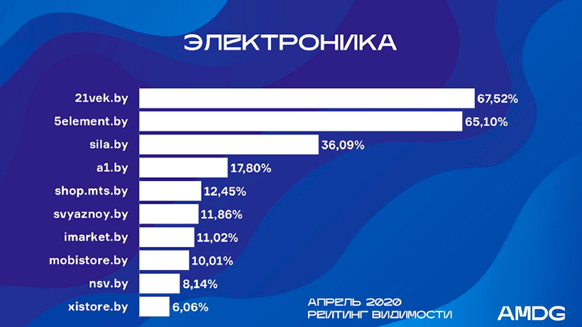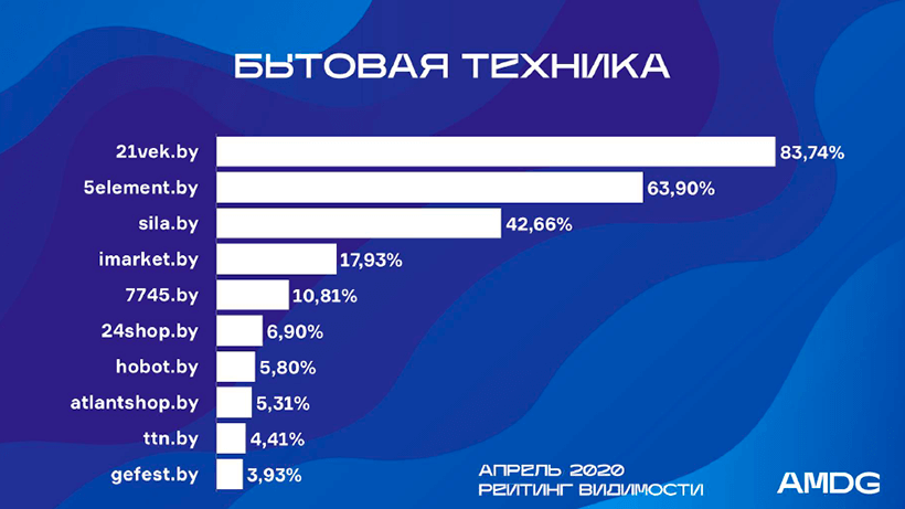 Digital-агентство AMDG провело исследование поисковых систем «Яндекс» и Google. Специалисты определили ТОП-10 видимых сайтов в 11 категориях ― от бытовой техники до банков. Так, 21vek.by лидирует сразу в шести сферах, растут направления финансов и садоводства, а туризм продолжает падение.