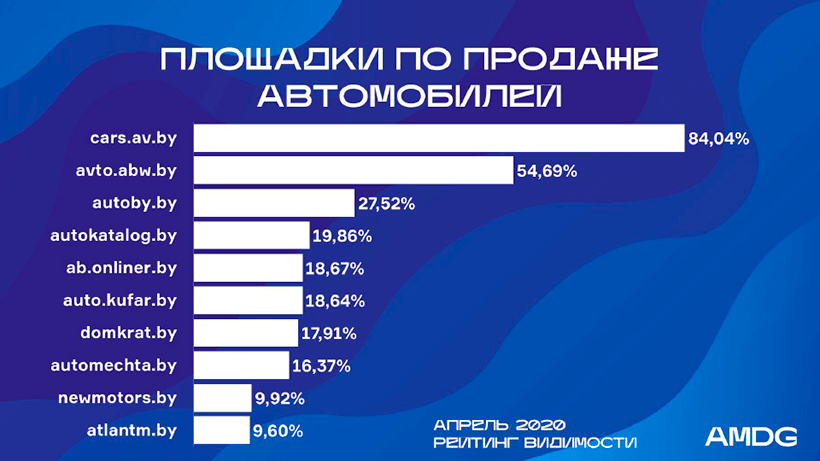 Автомобильный сайт Autokatalog.by взлетел на четвертую строчку рейтинговой таблицы, оставив позади крупные площадки: Ab.onliner.by и Auto.kufar.by. В апреле рост видимости Autokatalog.by составил 3,91% и остановился на показателе в 19,86%.