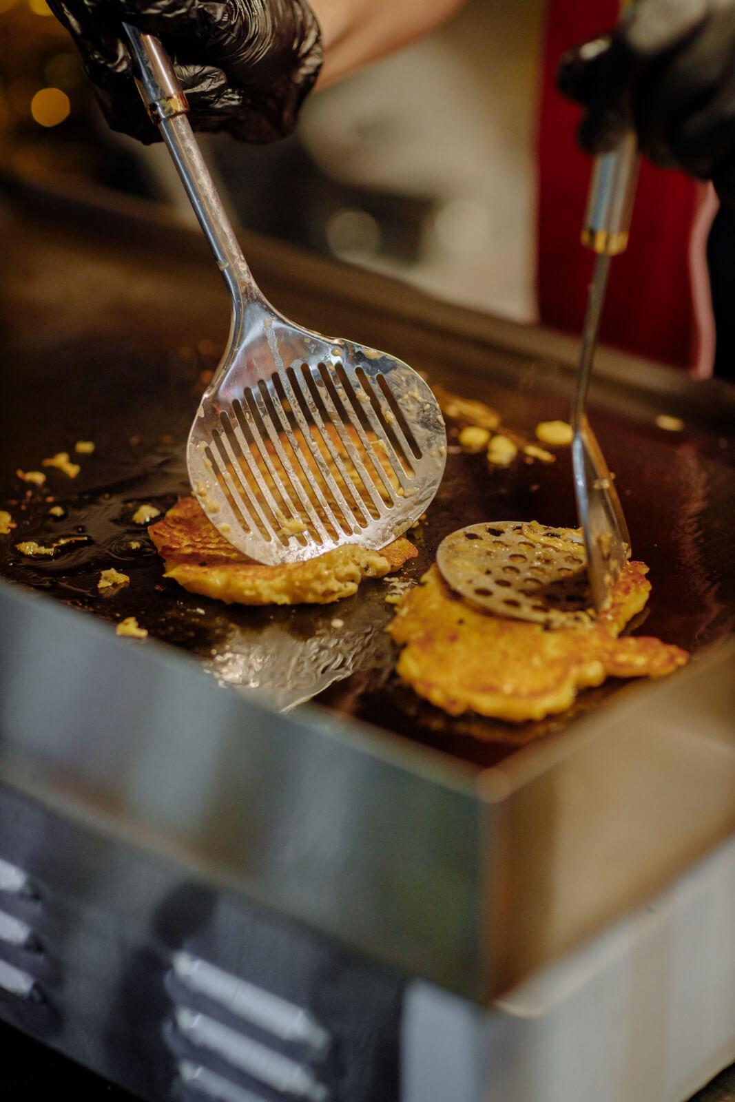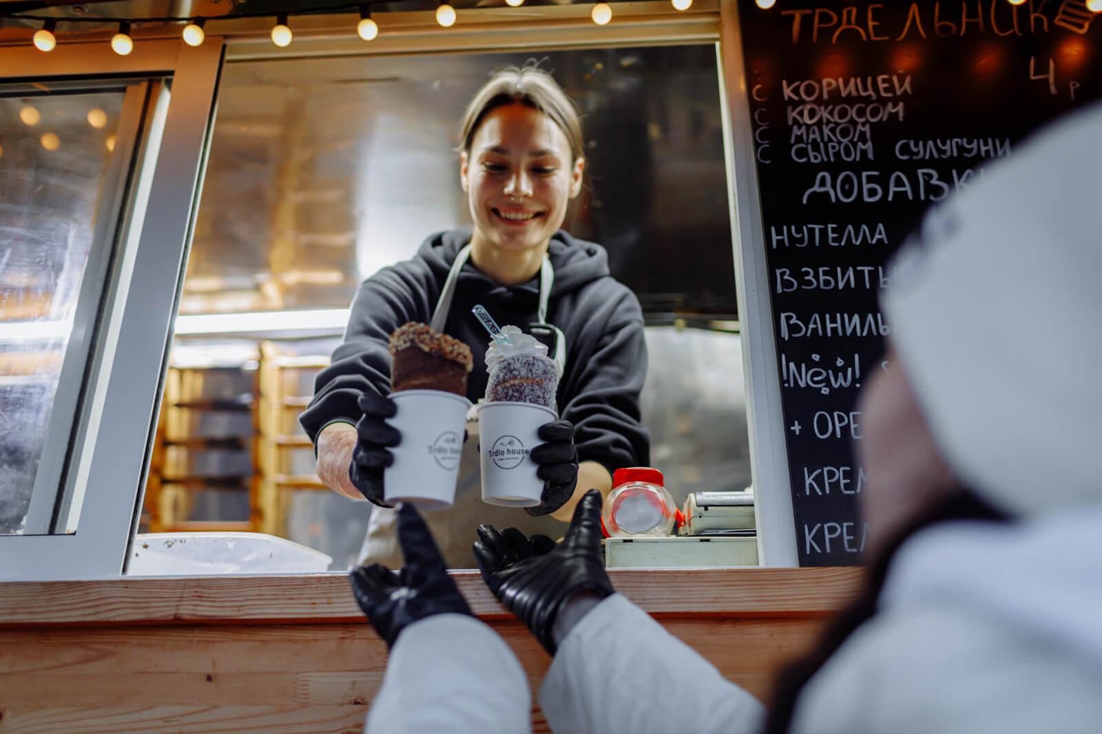Настоящее удовольствие для любителей морской продукции - креветки по-королевски в кулечке с соусом от Bulba Frites, приготовленные во фритюре с нежной корочкой. В дополнение к блюду идет соус на выбор. Шашлык и люля-кебаб от “Старого Тбилиси”, приготовленный на свежем воздухе по всем традициям грузинской кухни, с овощами на мангале можно заказать у аутентичного грузина и добавить авторский соус. Можно на ярмарке найти и настоящую азербайджанскую кухню: шаурма и хот-доги по-бакински от Baku Doner придутся по вкусу любителям острых блюд. Ароматныйузбекский плов, приготовленный в казане, можно найти в “Шашлычном дворе”.Party Park предлагает полакомиться самсой с сочной мясной начинкой прямо из печи и отведать хрустящие драники с разнообразной начинкой. Для любителей сладостей на площадке есть пышные рождественские трдельники от Trdlo-Haus и немецкие берлинеры от “Сытого мишки”.