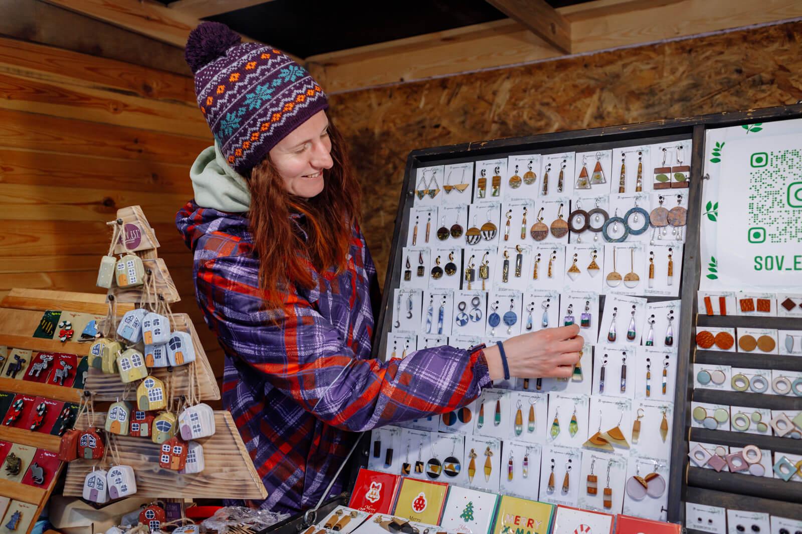 На ярмарке мастеров представлены вкусные угощения от ремесленников и новогодние подарки ручной работы. Тут можно найти натуральный мёд, уникальные чаи из Алтайского края, Китая и даже Египта, серьги и украшения ручной работы, волшебные деревянные домики для декора, вязаные игрушки, пряники и леденцы.