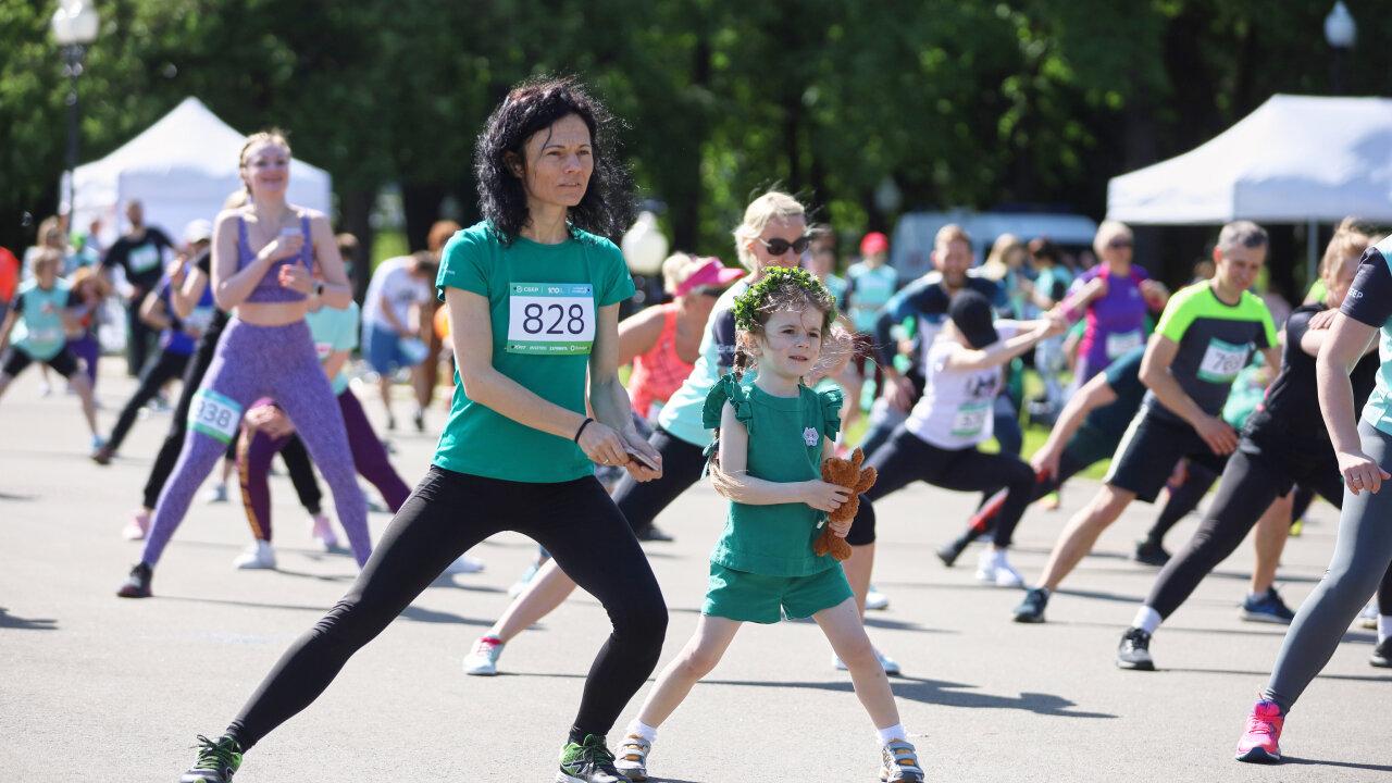 Перед началом забега всех участников ждала общая разминка. Ее начало прямо со сцены объявила маленькая пятилетняя Устинья, которая пришла поддержать своих родителей в этот день. Разминку проводили тренеры международной сети фитнес-клубов Xfit.