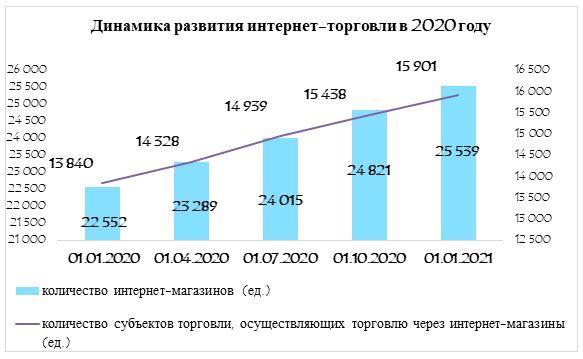 По состоянию на 1 января 2023 года было зарегистрировано 28927 интернет-магазинов. Их число по сравнению с началом 2022 года увеличилось на 3,7% (или на 1036 единиц). 14254 (49,3%) площадки принадлежали юрлицам, 14673 (50,7%) – индивидуальным предпринимателям.