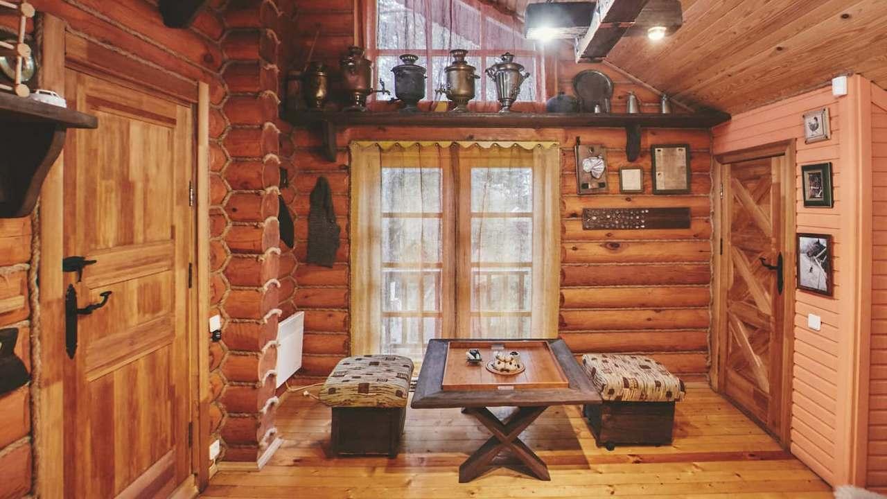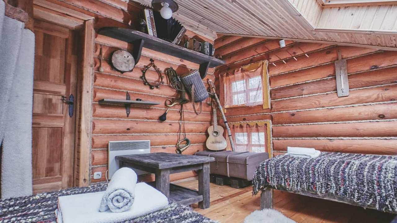 Гостей размещают в двух аутентичных деревянных избах – с террасой и с баней. Первая подходит для десяти, вторая – для пяти человек.